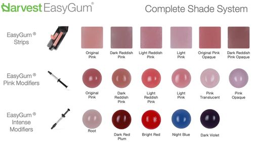 EasyGum Pink Modifiers come in six shades, especially developed to allow the technician to further enhance the natural look of the gingival aspects of the case.