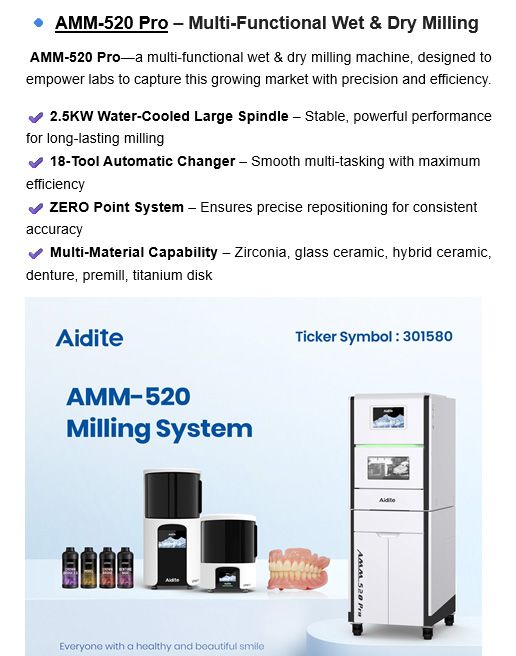 AMM-520 Pro is a wet and dry integrated multi-functional milling machine, with a stable structure and various fixture combinations, meeting different production needs. Suited to milling dentures.