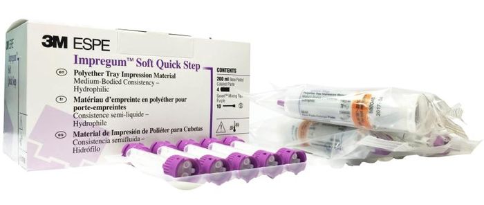 Refill Includes: 4 x Impregum™ Soft Quick Step Medium Body 50ml cartridges, 10 x Garant Purple mixing tips.