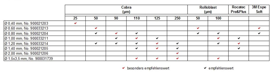 For: Cobra 90, Cobra 110, Cobra 125, Rolloblast 100, Rocatec Pre & Plus