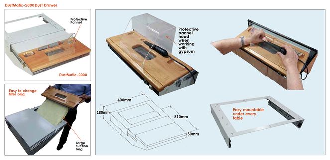 Suction drawer complete, with micro-respirable dust filter bag and protective panel.