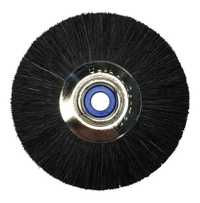 Slimline brushes have a special design. Starting with one large hair or bristle bundle a sophisticated assembly process produces a unique brush. The Slimline buffs are made of leather or different cloth types. The plastic center allows easy mounting and dismounting of Slimline brushes and buffs on a conical spindle.