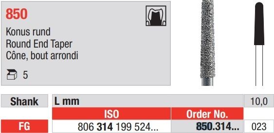Diamond Bur 850.023FG Packet