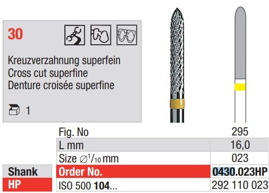- Carbide Bur 0430.023HP Cross Cut Superfine