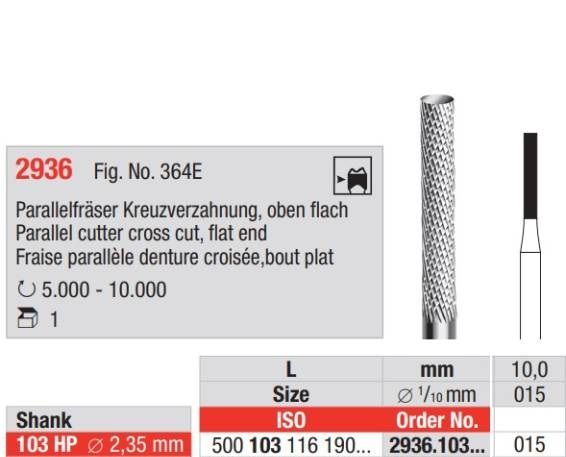 - Parallel Cutter Cross Cut 015HP Flat End