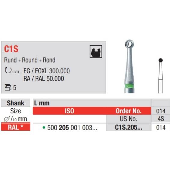 - Tungsten Carbide Bur RAL Round 6pcs
