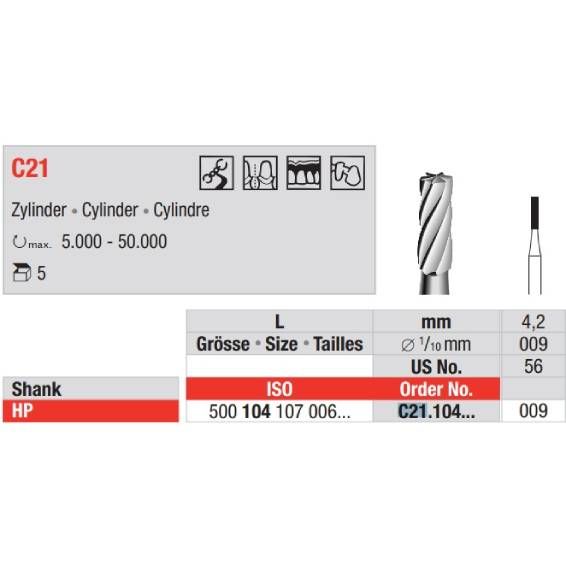 - Tungsten Carbide Bur Fig 21.009HP 5pcs