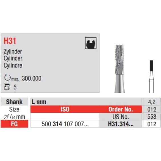 - Tungsten Carbide Bur Fig 31.012 FG 5pcs Cylinder
