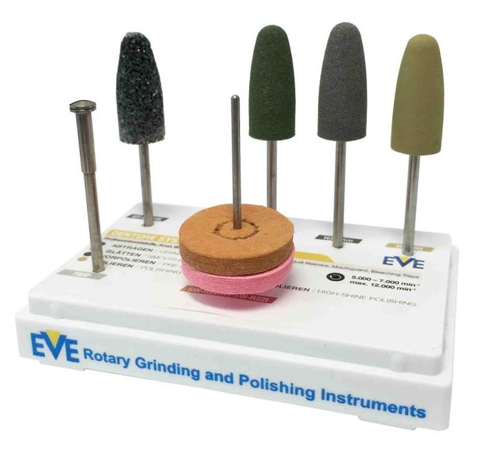 Polishers for denture acrylics, splints, mouthguard and bleaching trays.