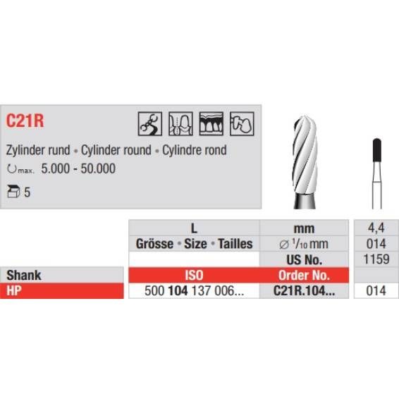 - Tungsten Carbide Bur Fig 21.014HP Round 5pcs
