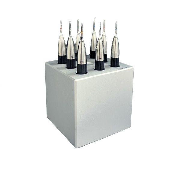 Implant Drivers Station, complete set incl. 8 implant drivers (standard length) and one solid aluminium cube, nature anodized