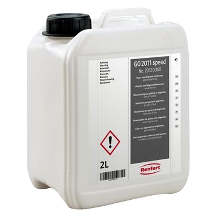 Suitable for cleaning different instruments and aids quickly and thoroughly in only 50% of the time in comparison to conventional plaster and alginate solvents. (50% faster than the orginal GO 2011)