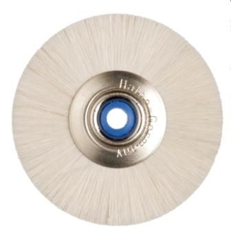 Slimline brushes have a special design. Starting with one large hair or bristle bundle a sophisticated assembly process produces a unique brush. The Slimline buffs are made of leather or different cloth types. The plastic center allows easy mounting and dismounting of Slimline brushes and buffs on a conical spindle.
