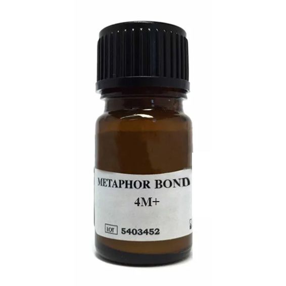 Metaphor Bond 4M+ is a primer for metals, especially for repairing of Co-Cr or Ni-Cr based metal dentures and resin denture with clasps, wires etc. It contains 4-META and it ensures good bonding between metals and MMA/PMMA resins to be used for dentures.