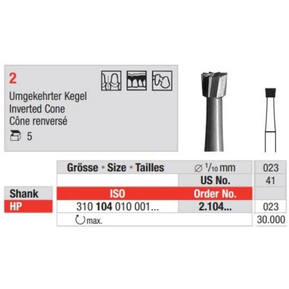 Edenta Steel Bur Inverted Cone 2.104.023