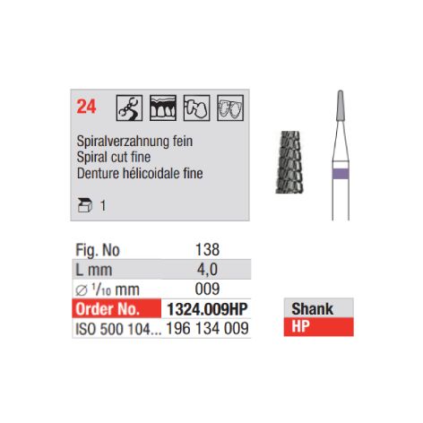 - Carbide Bur 1324.009HP Spiral Cut Fine