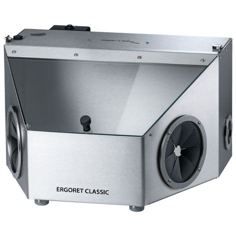 The ERGORET CLASSIC is a workstation for grinding and processing dental models, frameworks, orthodontic appliances or dusty workpieces. It is especially useful when processing zirconium with a water cooling turbine.