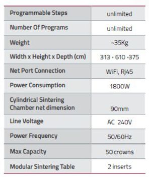 (*With certain fast zirconia brands. For larger quantities sintering time may be longer) - Maximum capacity - 50 crowns & full bridges on 2 trays